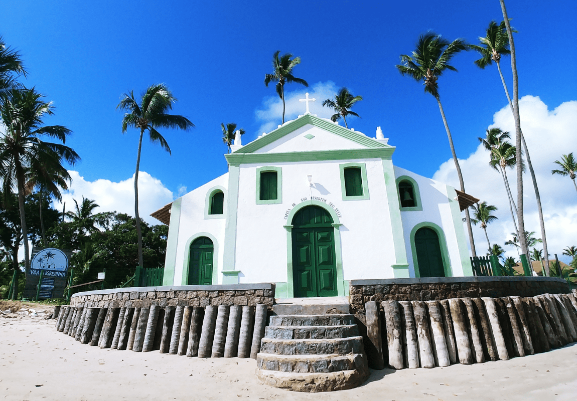 Sobrevoe piscinas naturais, bancos de areia e a famosa igrejinha de Carneiros em uma experiência única.